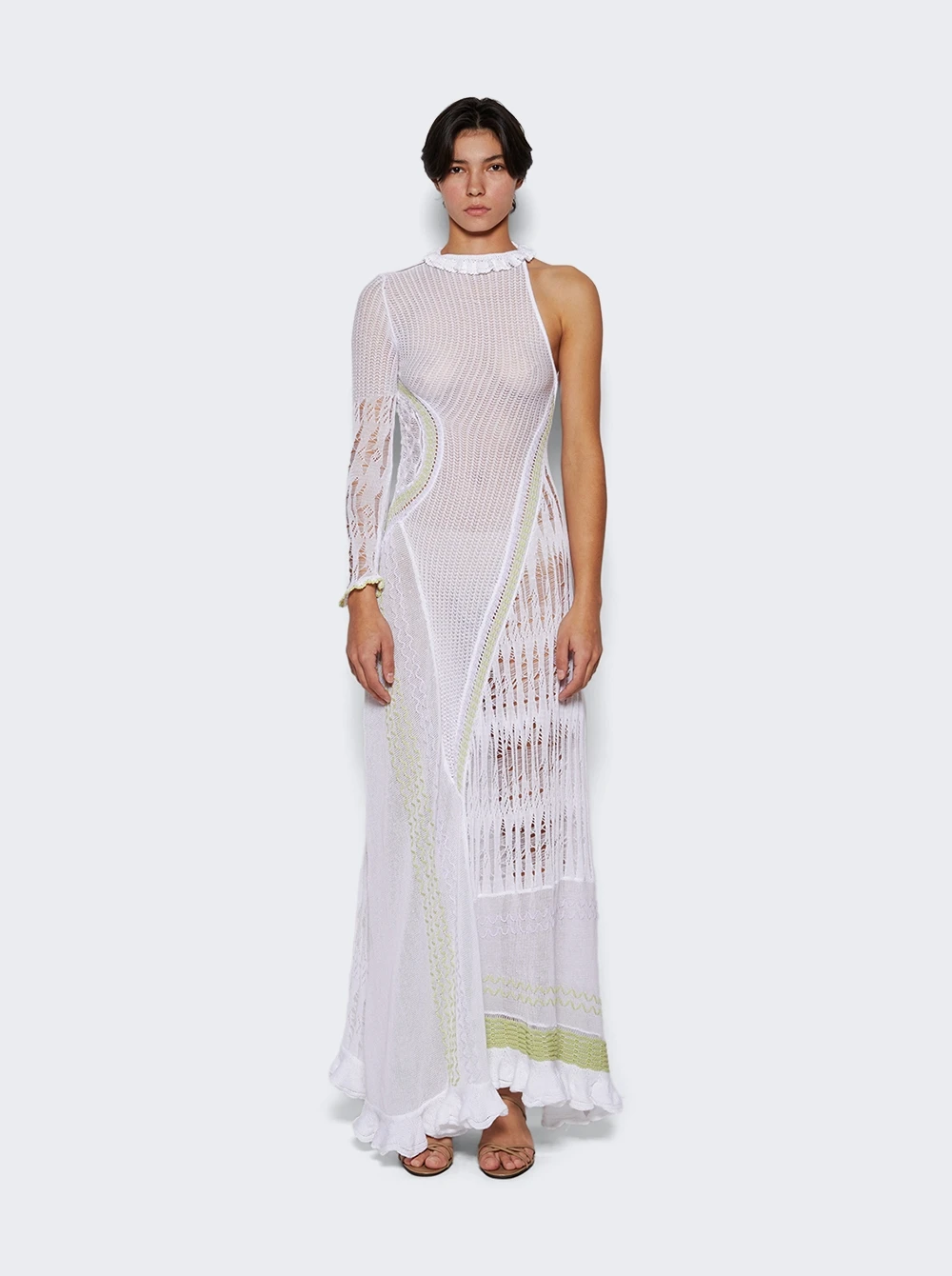 - One sleeve asymmetric maxi dress with an open back
