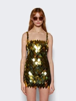 - Mini dress in gold embroidered rhombus sequins